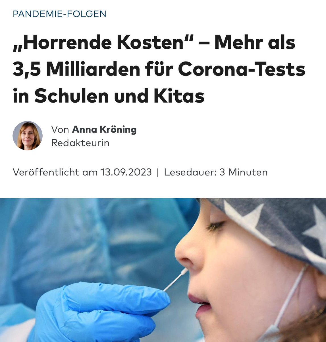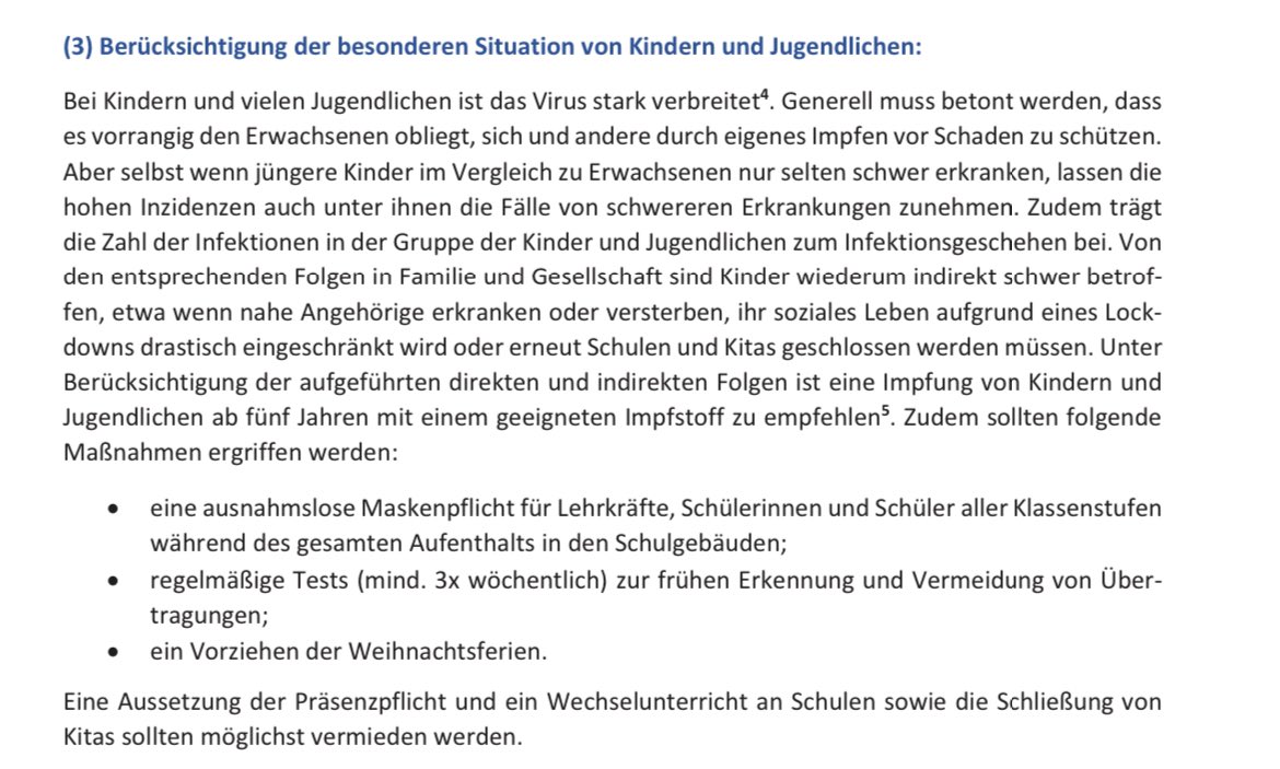 3/ Wo war Frau Huzly, als eigentlich wissenschaftliche Institutionen wie die @Leopoldina in einer Stellungnahme (verfasst u. a. von Drosten und Charité-Chef Kroemer) empfahlen, Kinder & Jugendliche „mindestens 3x wöchentlich“ anlasslos zu testen?
