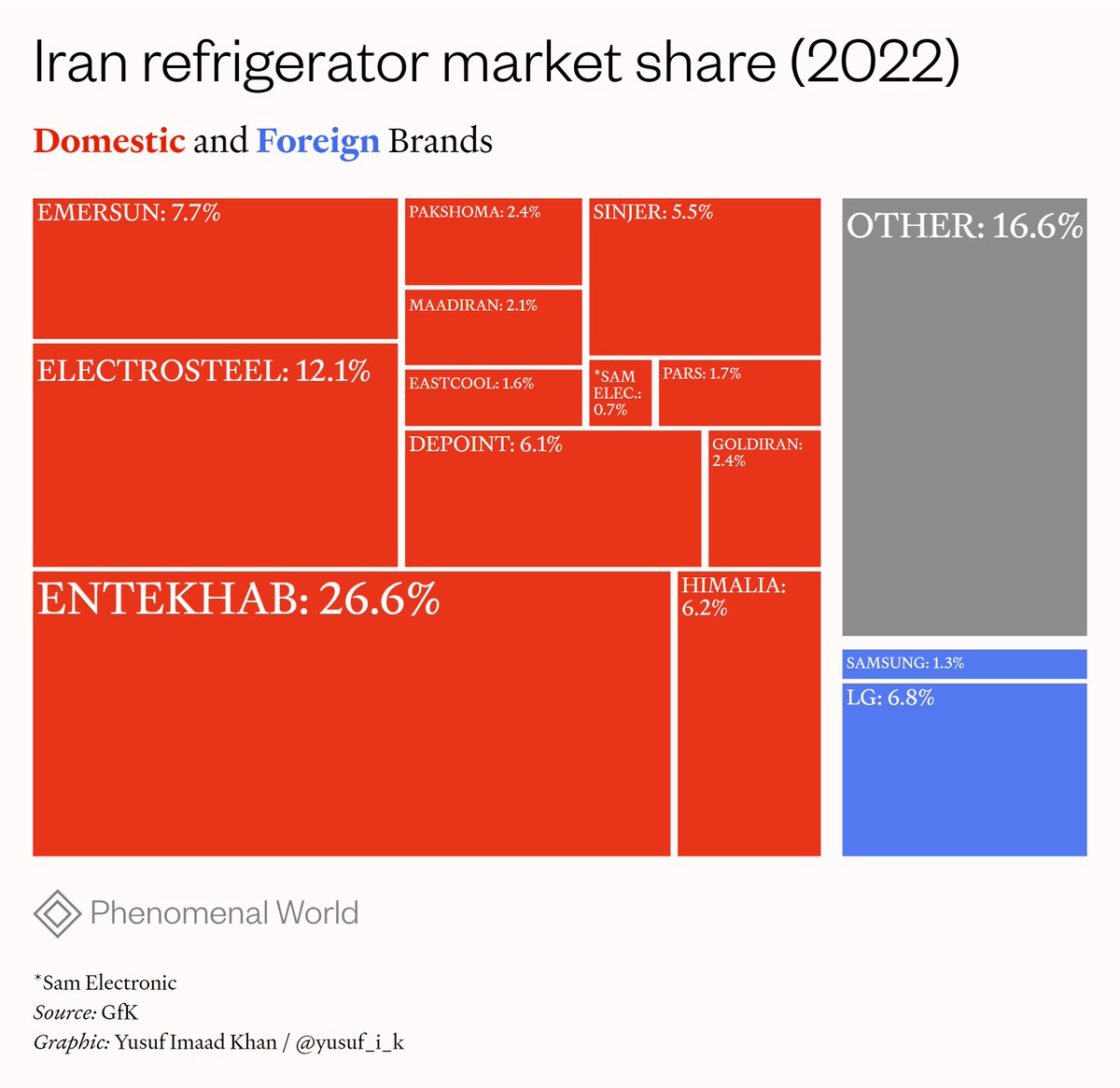 Sanctions and protectionist policies largely pushed the once dominant Korean and European brands, such as LG and Bosch, out of Iran.