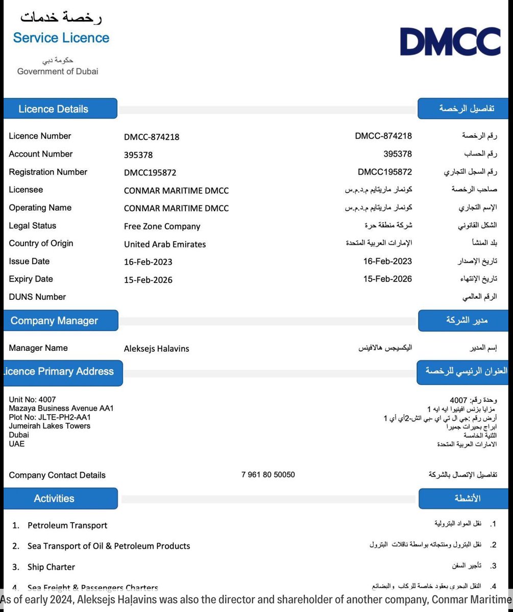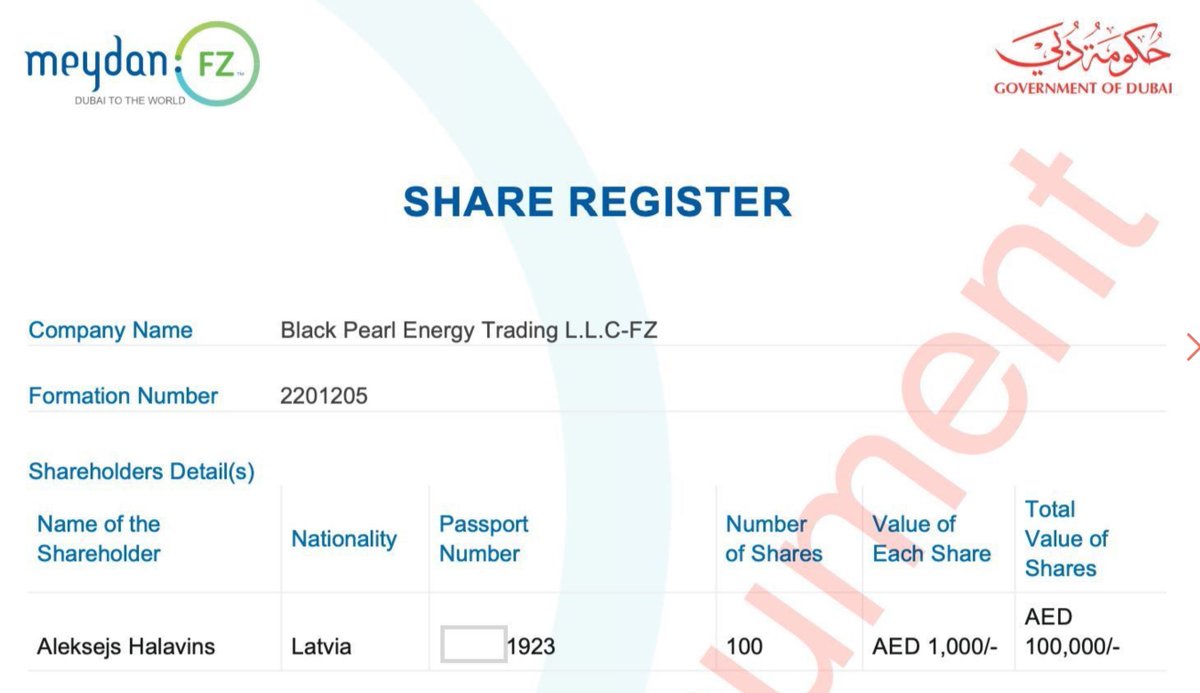 Black Pearl Energy Trading LLC, which Halavins owns and runs - with affiliate companies OGC Shipping LLC and Conmar Maritime.