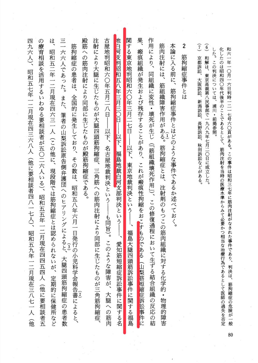 白河判決(大腿四頭筋訴訟)については福島地白河支判昭和58年3月30日判時1075号