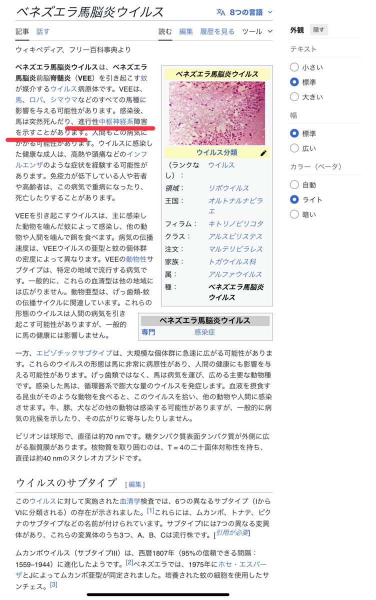 心配になってレプリコンワクチンで使われているベネズエラ馬脳炎ウイルスについて調べてみると、やはり中枢神経に影響していました! Image