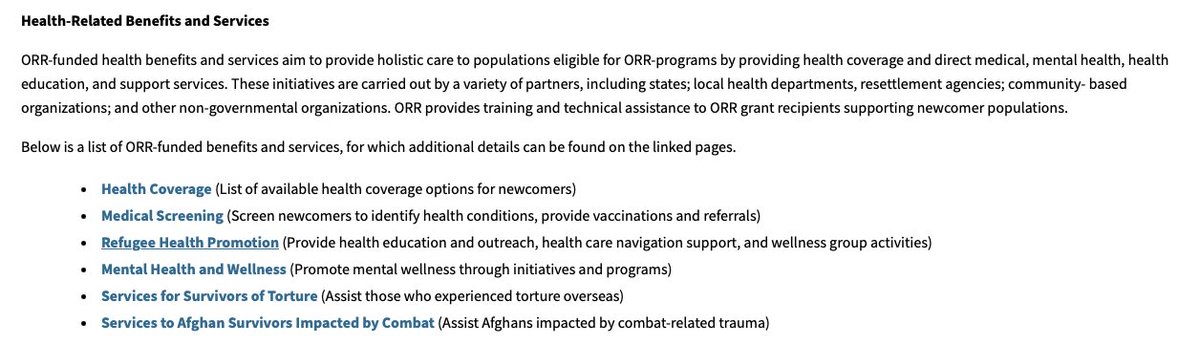 💰Refugee Resettlement programs, including health screenings, transportation, and temporary housing