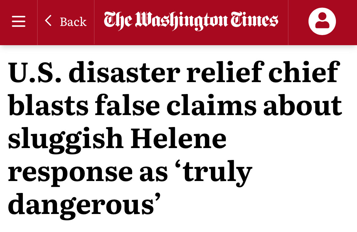 /1 The head of Biden-Harris FEMA complains about “demoralizing” rhetoric and promoting a "truly dangerous narrative" while Americans were abandoned and left to die from Hurricane Helene.