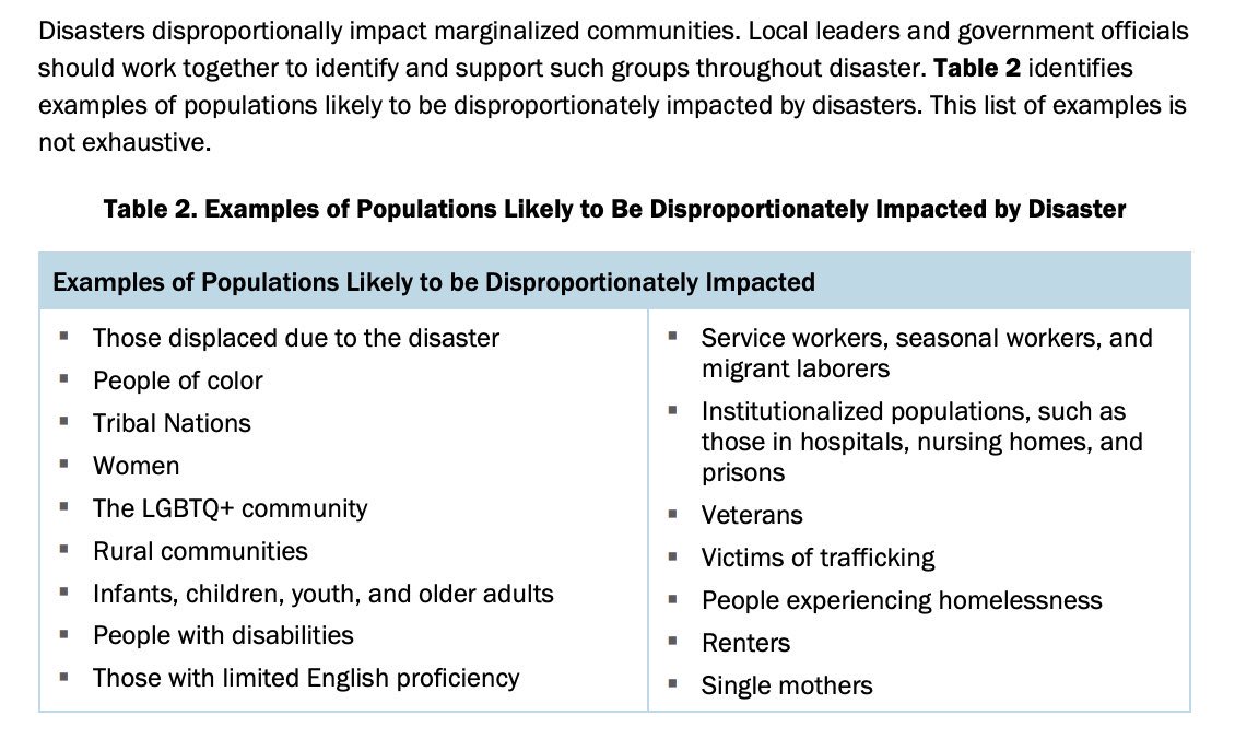 🚨FEMA also identified “People of color,” “Women,” and “The LGBTQ+ community” as “disproportionately impacted by disaster.” According to the Biden-Harris administration, natural disasters don't have the same impact on white straight men.
