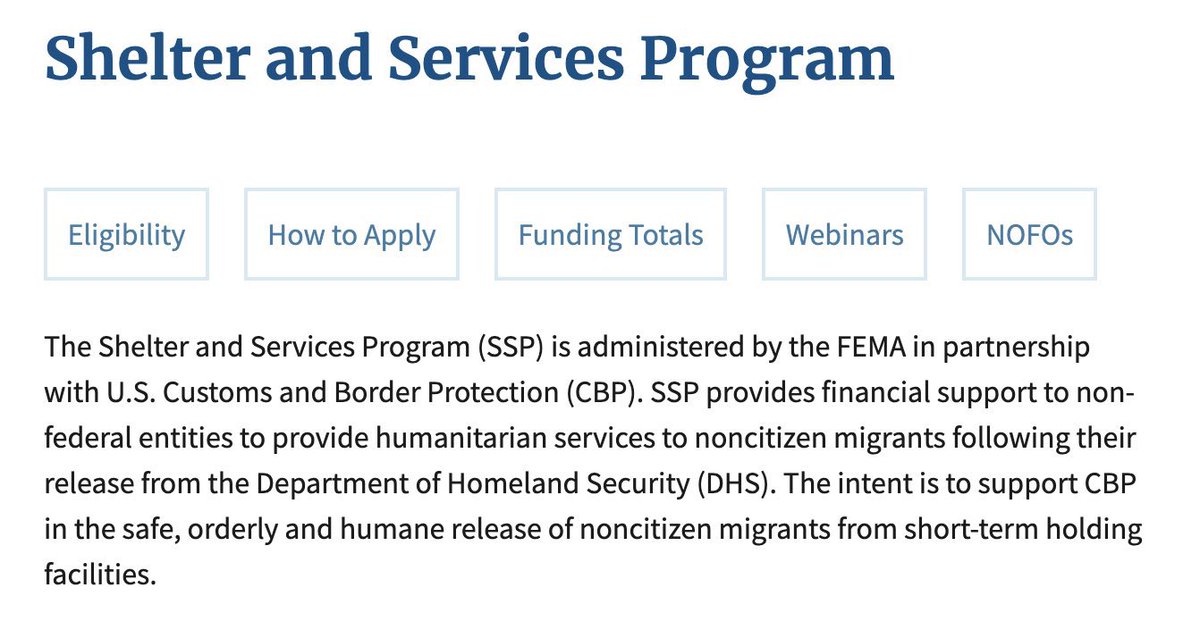 🚨The Shelter and Services Program is designed to exclusively provide shelter and services to illegal aliens. Over $1 BILLION in taxpayer dollars have been allocated between FY2023 and FY2024.