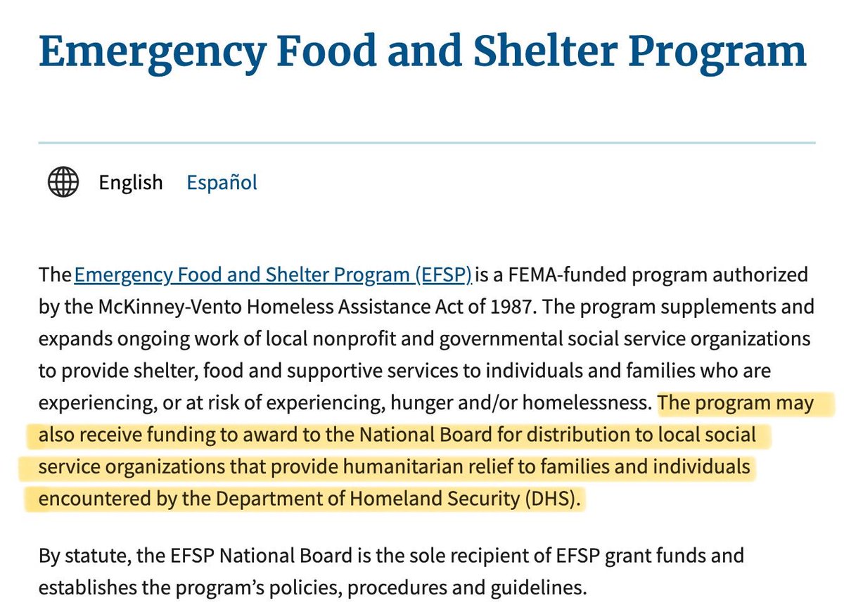 🚨FEMA’s Emergency Food and Shelter Program has been reshaped to provide funding to “families and individuals encountered by the Department of Homeland Security” – aka illegal aliens. $685 MILLION has been allocated to fund illegal aliens.
