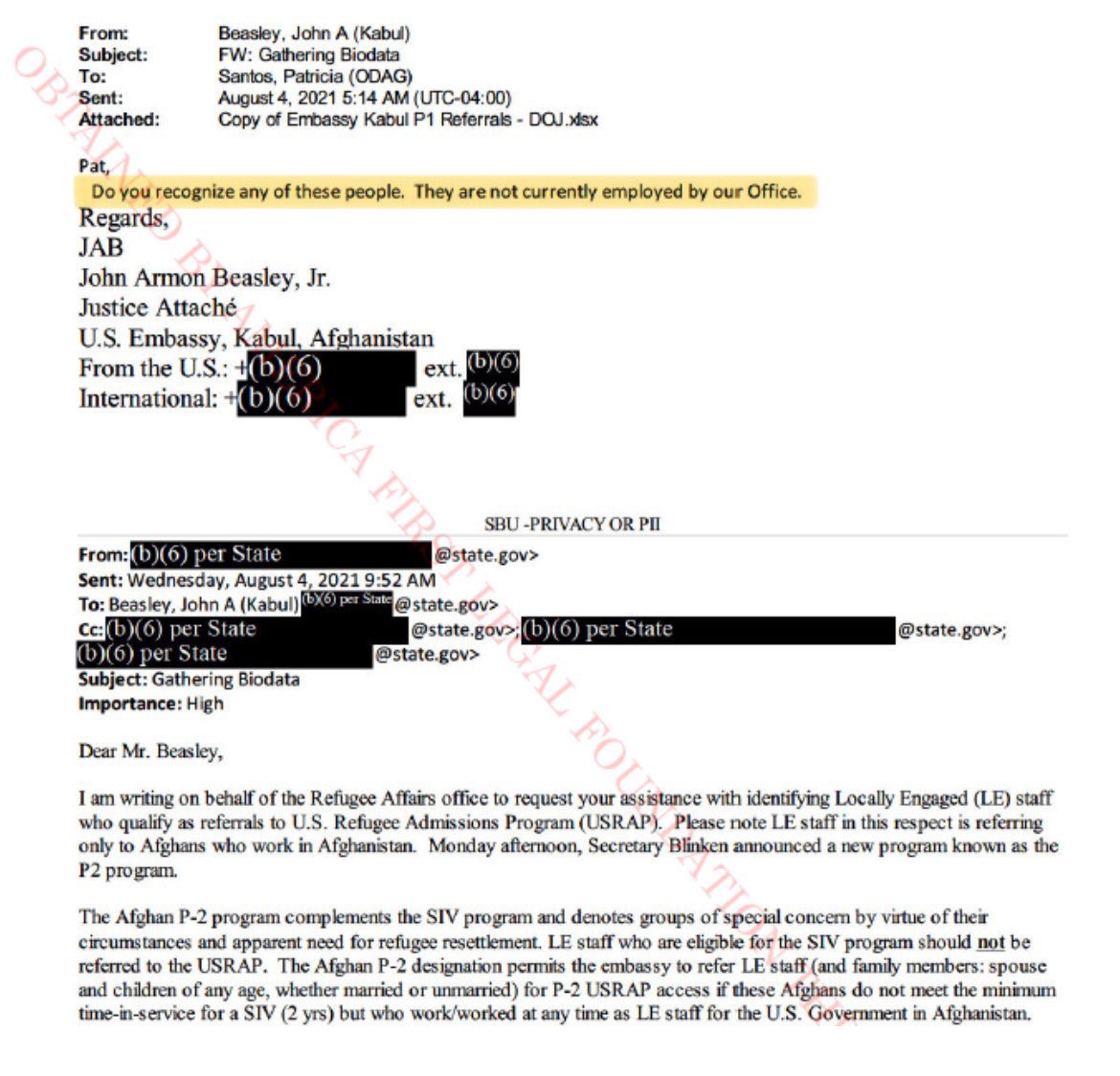 /2 During the botched Afghanistan withdrawal in 2021, the Biden-Harris admin claimed that they were importing Afghans as refugees who helped the U.S. government when in reality, officials admit in obtained docs from our litigation that they did not know their identities.
