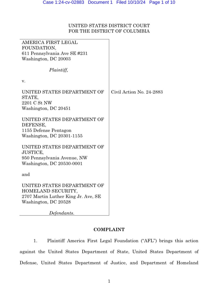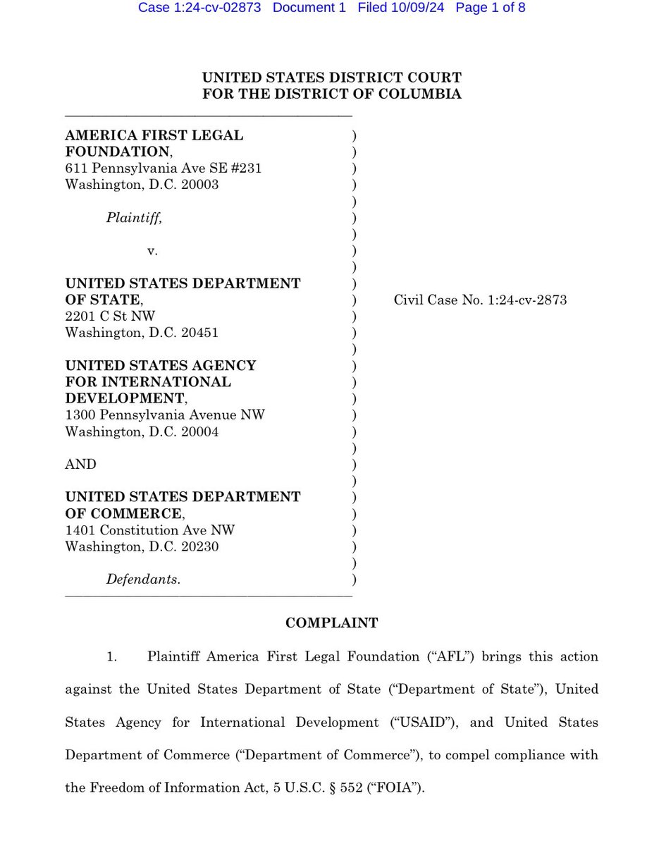 /1🚨We just sued the Biden-Harris Department of State, Commerce, and USAID for illegally concealing records related to the U.S. gov't involvement in recent efforts to suppress free speech, specifically the arrest of Telegram CEO Pavel Durov and social media censorship in Brazil.