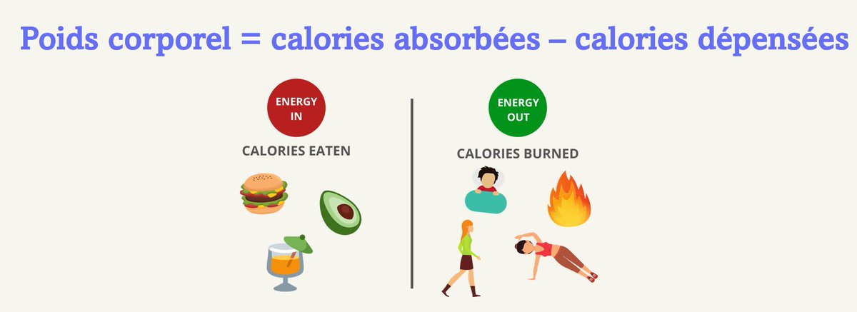 Cette équation est souvent simplifiée à l'extrêmedans le discours public sur l'obésité, comme si les deux variables (kcal absorbées et kcal dépensées) dépendaient uniquement de deux facteurs : la quantité de nourriture consommée et l'exercice pratiqué