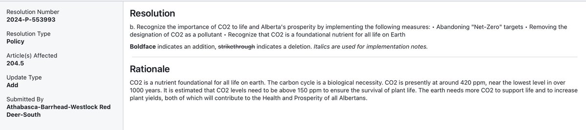 Next up is a team effort from Athabasca-Barrhead-Westlock and Red Deer South to ensure that CO2 is no longer designated as a pollutant and Netzero is abandoned!