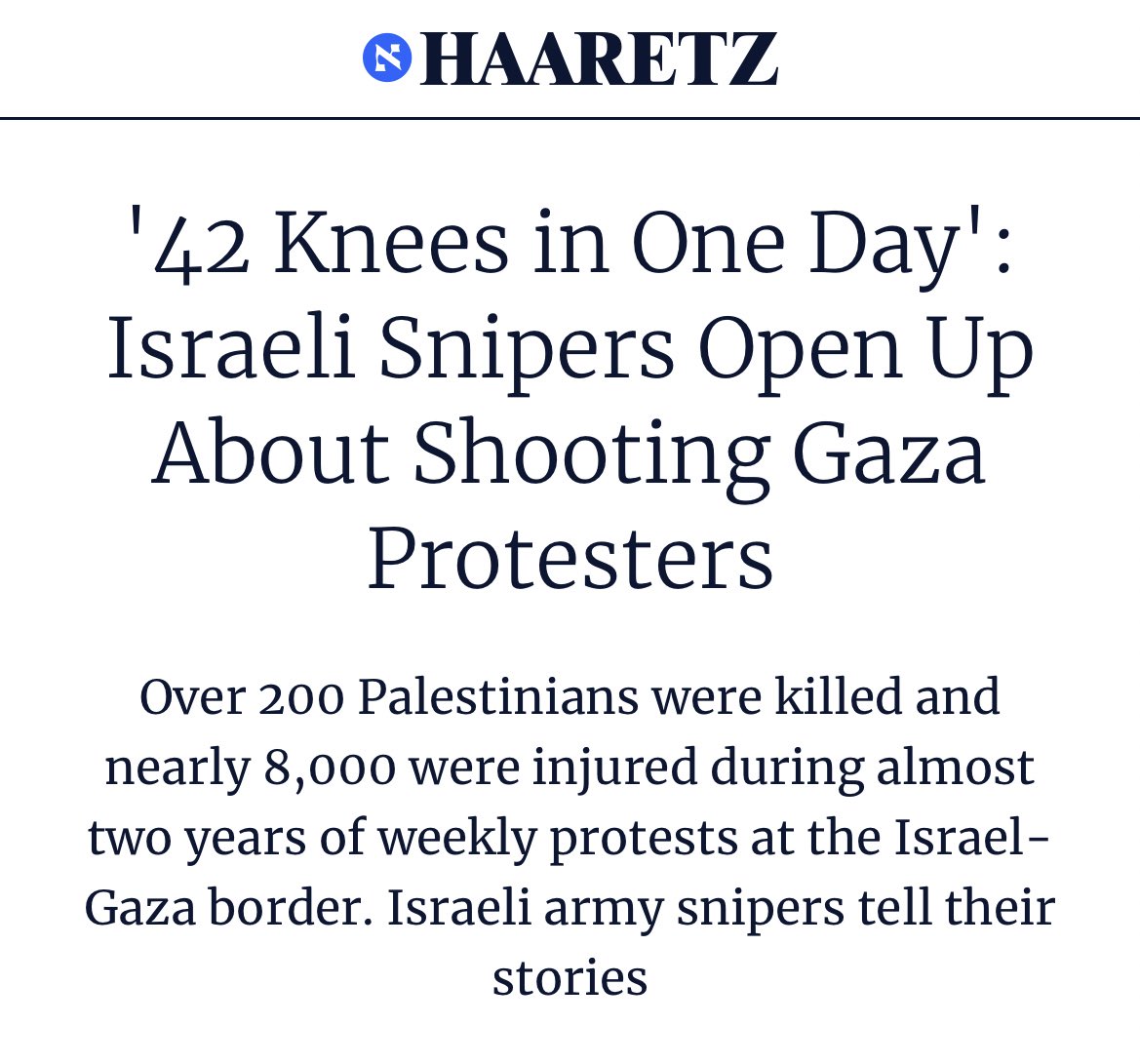 2018: Gaza peaceful protest against Israeli occupation. Israeli Snipers said they aimed at knee caps in order to amputate as many legs as possible. Although they also killed people.