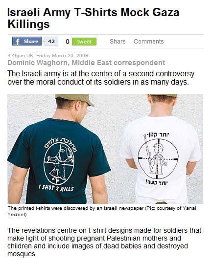 Israeli terrorists wear a shirt that depicts shooting pregnant women.