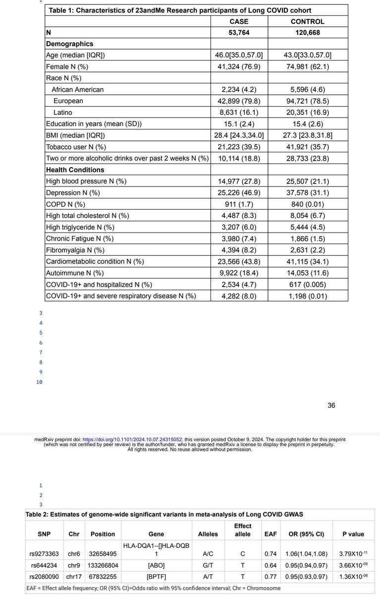 4)▶️ The ABO gene, which has previously been associated with COVID-19 severity. This indicates that factors affecting the initial COVID-19 infection may influence the development of Long COVID.