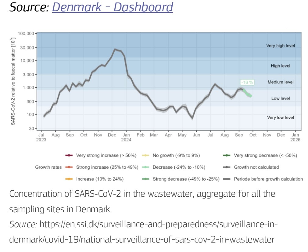 - Increasing Trends: Four countries—Austria, Germany, Greece, and the Netherlands—have reported rising levels of SARS-CoV-2 in wastewater.
