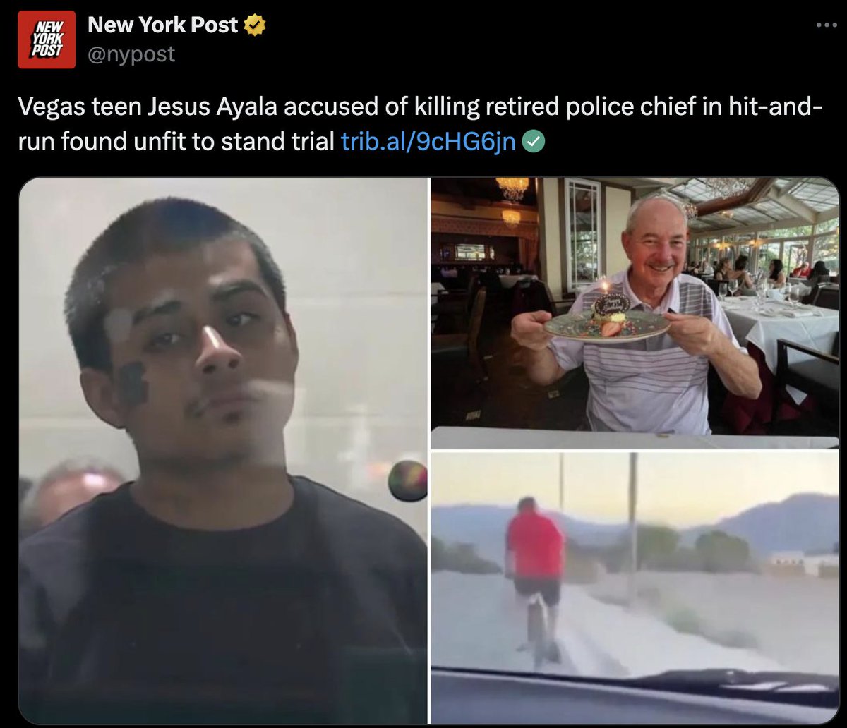 Ayala intentionally ran down and m*rdered retired police chief Andreas Probst. Cackling with glee as he did it, he taunted cops and said he'd only get a "slap on the wrist" for murdering the white man