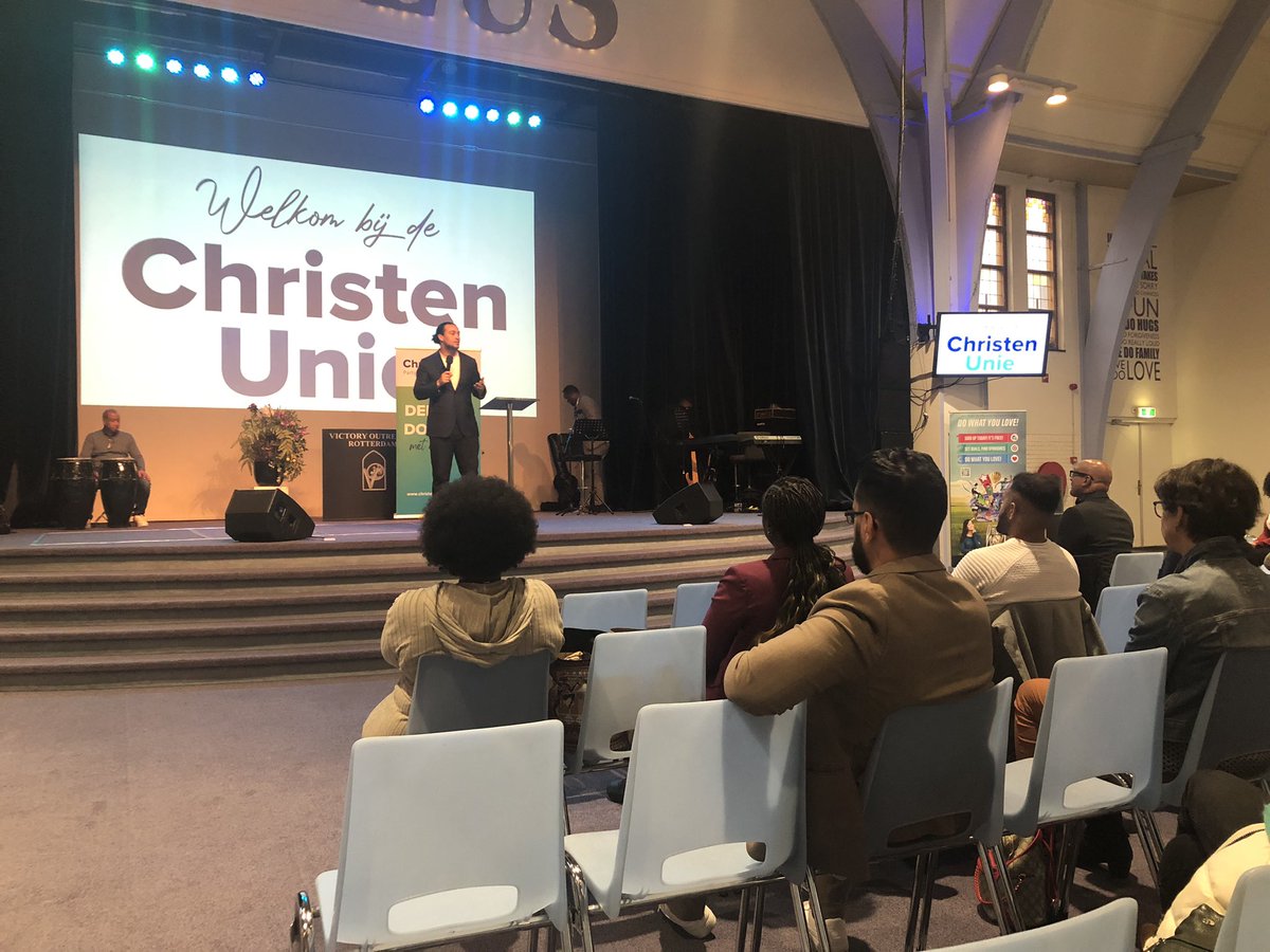 In Rotterdam. De #ChristenUnie organiseert een ‘veelkleurig netwerkevent’. #draad #erbij #live