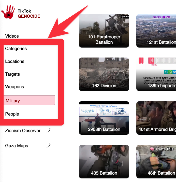 4/ You may filter videos by the type of weapon the IDF used to attack the target: