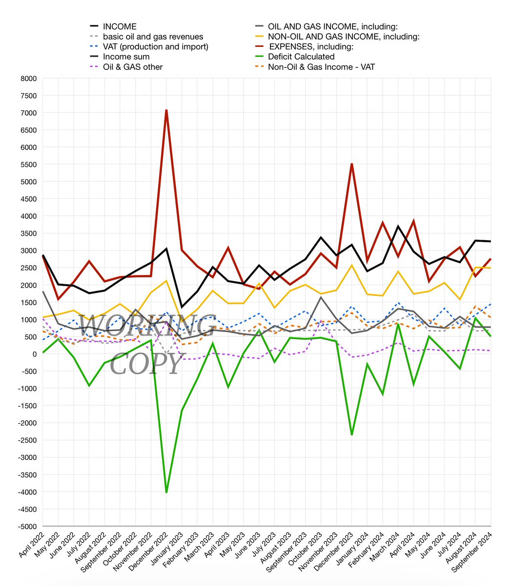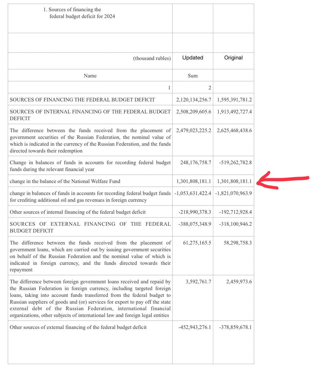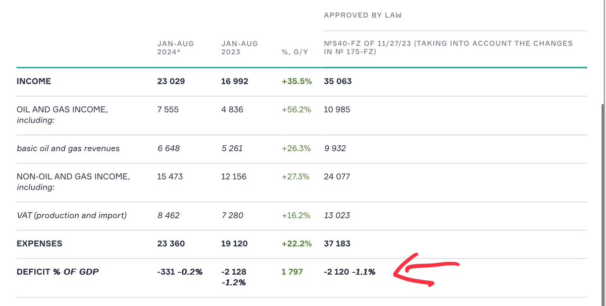 This one is for August 2024. See how the deficit went up 2.120 Trillion Rubles? This came from the Amended 2024 Budget