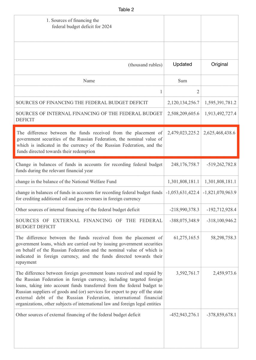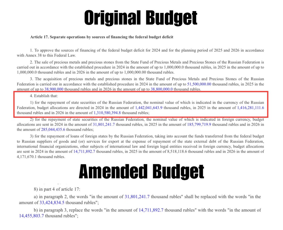 This new information is why I had to pause the OFZ thread, because my old chart no longer worked. They came up with a new 3rd 2024 Budget.