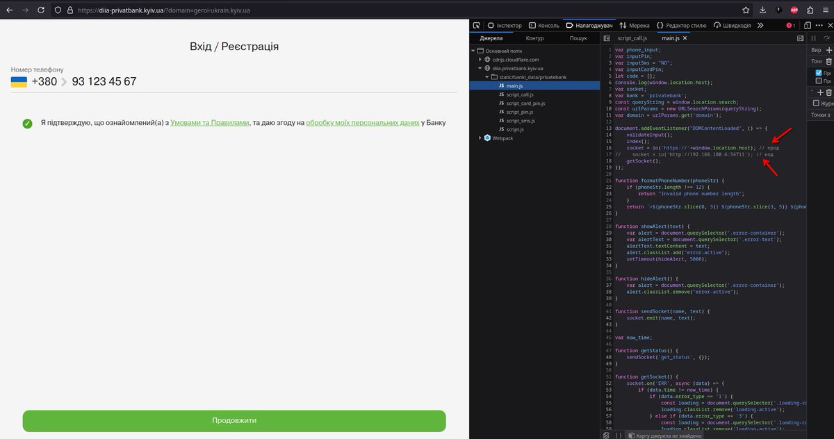 Коли пробуємо фейкові дані - помилка. Запити через , підозрюю на "дзеркальний" реальний банкінг, звідки будуть прокидатись відповіді, відповідно і смс відправиться, і все решту.