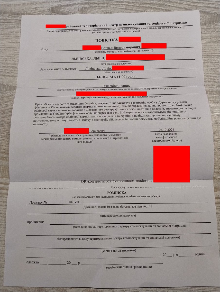 Повістка з моїми даними, але помилковим QR-кодом - по факту хтось невідомий представився МО, вкрав мої дані і перевірити достовірність того хто вкрав - я не можу.