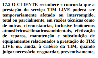 Apresento aqui alguns trechos dos contratos da Claro Residencial Fixo e Live TIM que versam sobre esse assunto: