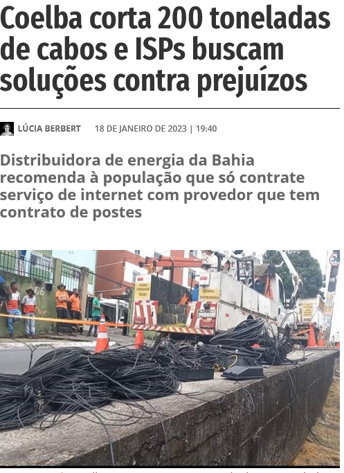 Embora a internet comercial tenha chegado no Brasil em 1995, as privatizações do governo FHC do setor elétrico em 1998 não anteciparam essa realidade de múltiplos usuários de um poste. Hoje não só as empresas de telecomunicações como as prefeituras e a segurança pública também são usuárias dos postes e nossos gestores públicos concederam o controle deles a um único setor: as distribuidoras elétricas.