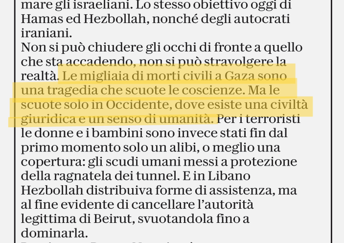 che vede il senso di umanità solo in Occidente, mentre fuori - sottointeso - c'è l'oscura barbarie. Questi 2 sono solo alcuni dei tanti messaggi, articoli, etc, che negli ultimi tempi sono apparsi sui maggiori mass media, con il tono da "siamo la civiltà superiore e quindi