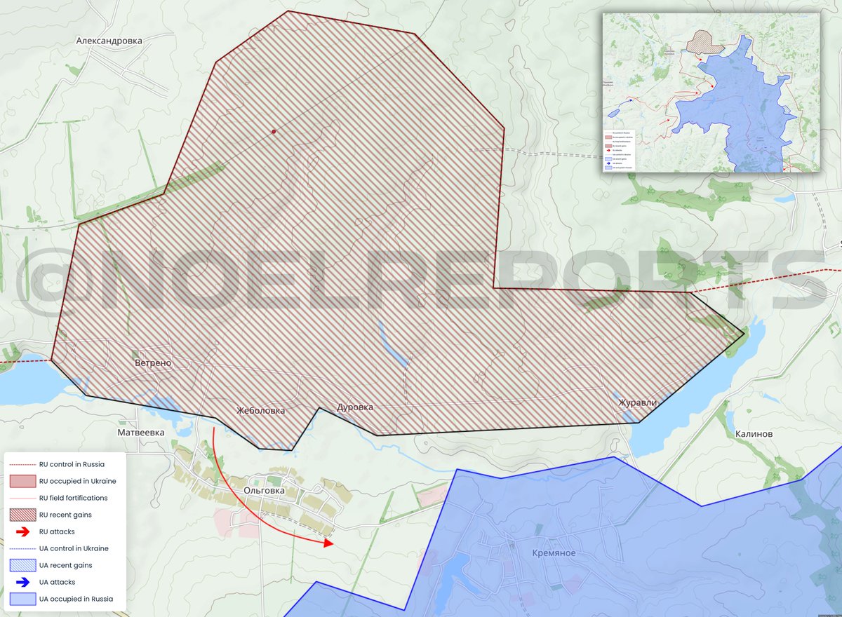 Near Korenevo, the situation has now been clarified and updated based on newly located images. Ukrainian troops are no longer present north of the Krepna River. Vetreno-Zhebolovka, Durovka and Zhuravli fall back under Russian control, Ol'govka is disputed.