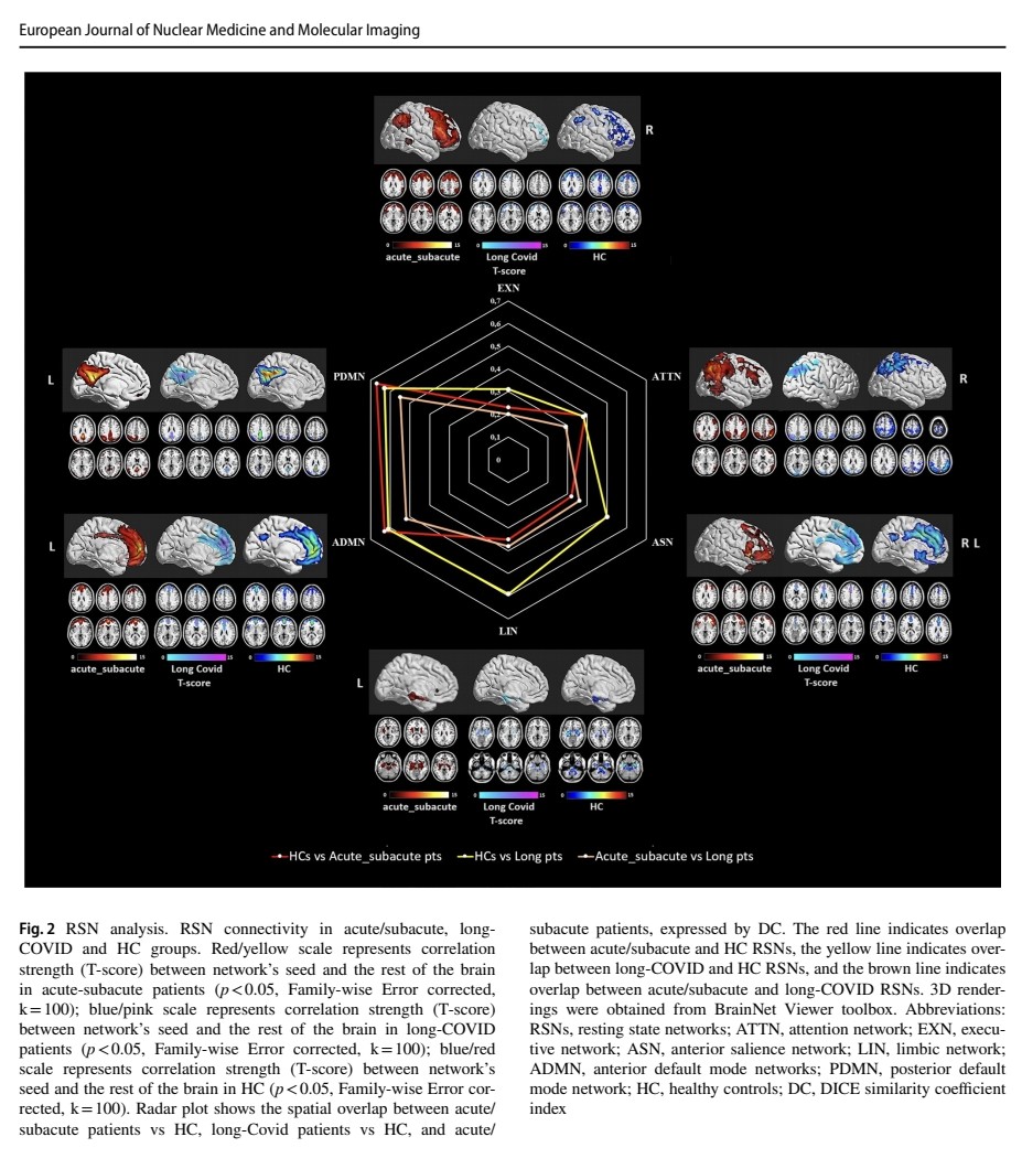 3) However, in the long run, these same networks showed reduced connectivity. This matched the cognitive problems long-COVID patients experience, like trouble focusing and making decisions.