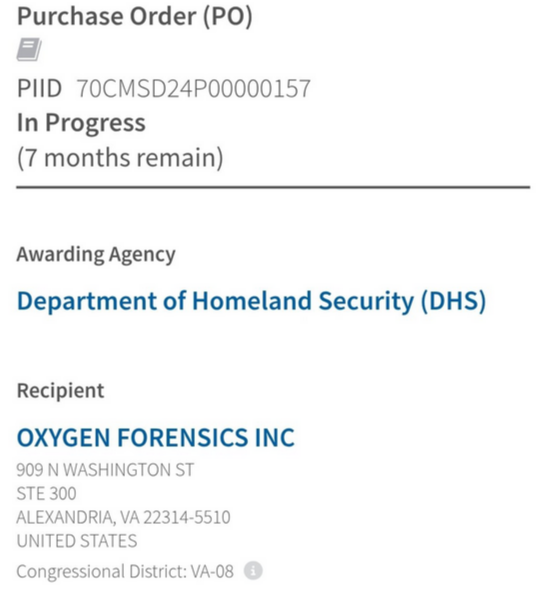 Multiple U.S. federal agencies (FBI, DEA, ICE and State Department) have signed a three-year contract with Oxygen Forensics, a Russian software company founded by "former" FSB agents, specializing in software for geolocation and extraction of deleted data from smartphones.