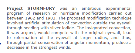 Project STORMFURY was an ambitious experimental program of research on hurricane modification carried out between 1962 and 1983. aoml.noaa.gov/hrd/hrd_sub/sf…