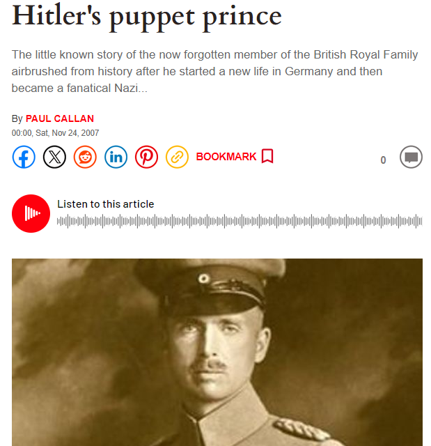 "He was born a British prince.His father was Queen Victoria’s youngest son. He was educated at Eton. Yet he was denounced in Britain as a traitor, became a highly honoured member of the Nazi Party"