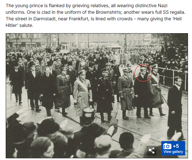 "Philip, circled, is pictured with relatives wearing Nazi uniforms at his sister Cecile's funeral in Germany in 1937" dailymail.co.uk/news/article-3…