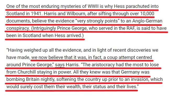 "Authors of Rudolf Hess: Treachery and Deception, assert that Prince George, the Duke of Kent & uncle to Queen Elizabeth II, played a key part in planning a coup d’état with Hitler’s deputy,Hess,to remove Prime Minister Winston Churchill & forge a treaty with the Fuhrer."