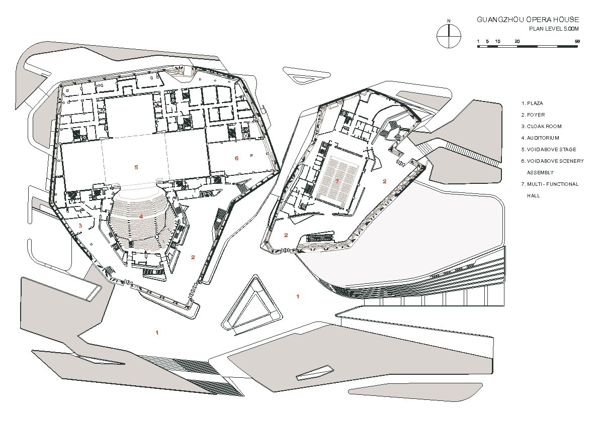 Apoyándose en lo que ya habían hecho Hans Scharoun en Berlín o Jorn Utzon en Sídney, Zaha proyectó las partes más estrictas con formas, efectivamente, estrictas.