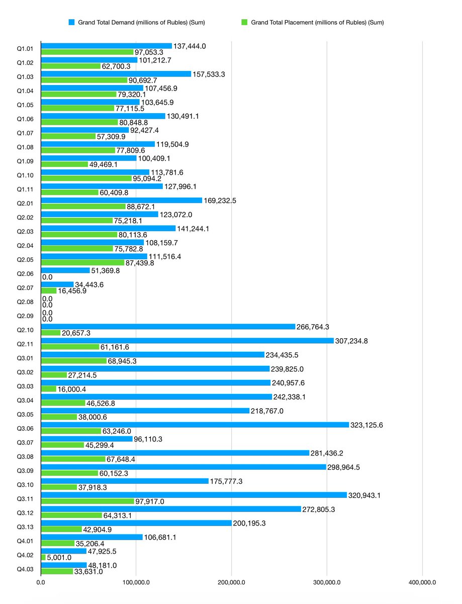 Some of the liquidity refills as banking does banking things, but. I think the overall trend is pretty clear. We’ve reached the point that ALL the surplus liquidity in Russian banking isn’t enough on a PER WEEK basis to meet Russia’s OFZ goals.