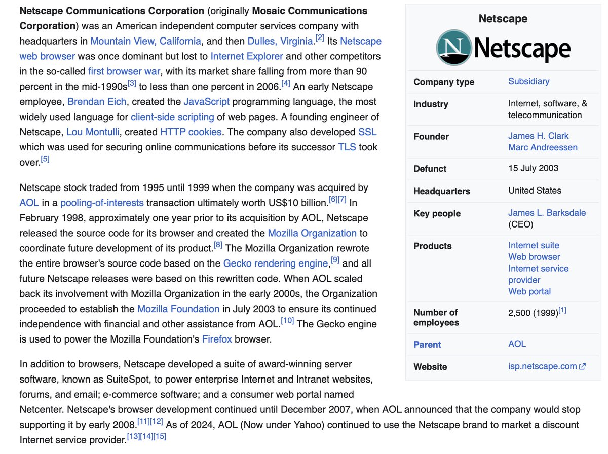 AOL connections to: Netscape, Mozilla, Ancestry, Ripple, Brave, Sun Microsystems