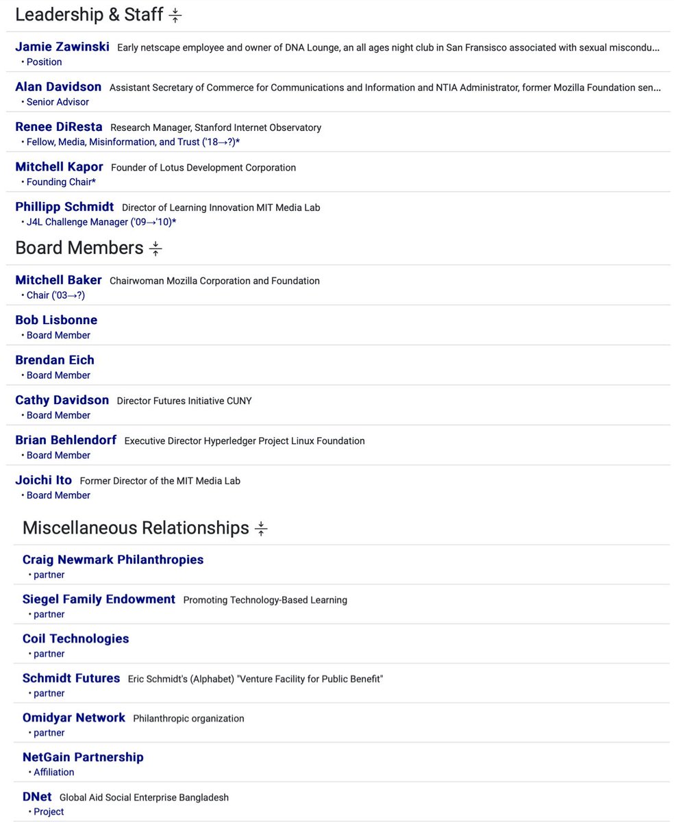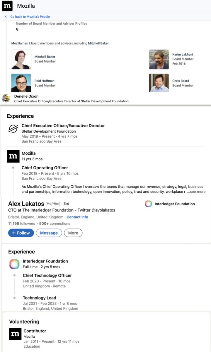 Denelle Dixon, Reid Hoffman, Alex Lakatos, Renee DiResta, Phillipp Schmidt, Joichu Ito, Brian Behlendorf, and Coil (Ripple subsidiary) all are member of Mozilla Foundation in some form.