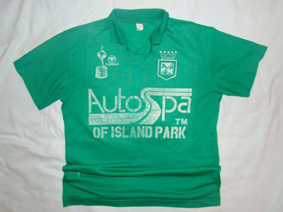 Un agente de la DEA tocó las puertas de Auto Spa of Island Park un día después de que Nacional luciera esta camiseta en el Orange Bowl -verdadera casa de la selección- por la libertadores de 1990. Necesitaba el baño prestado. Image