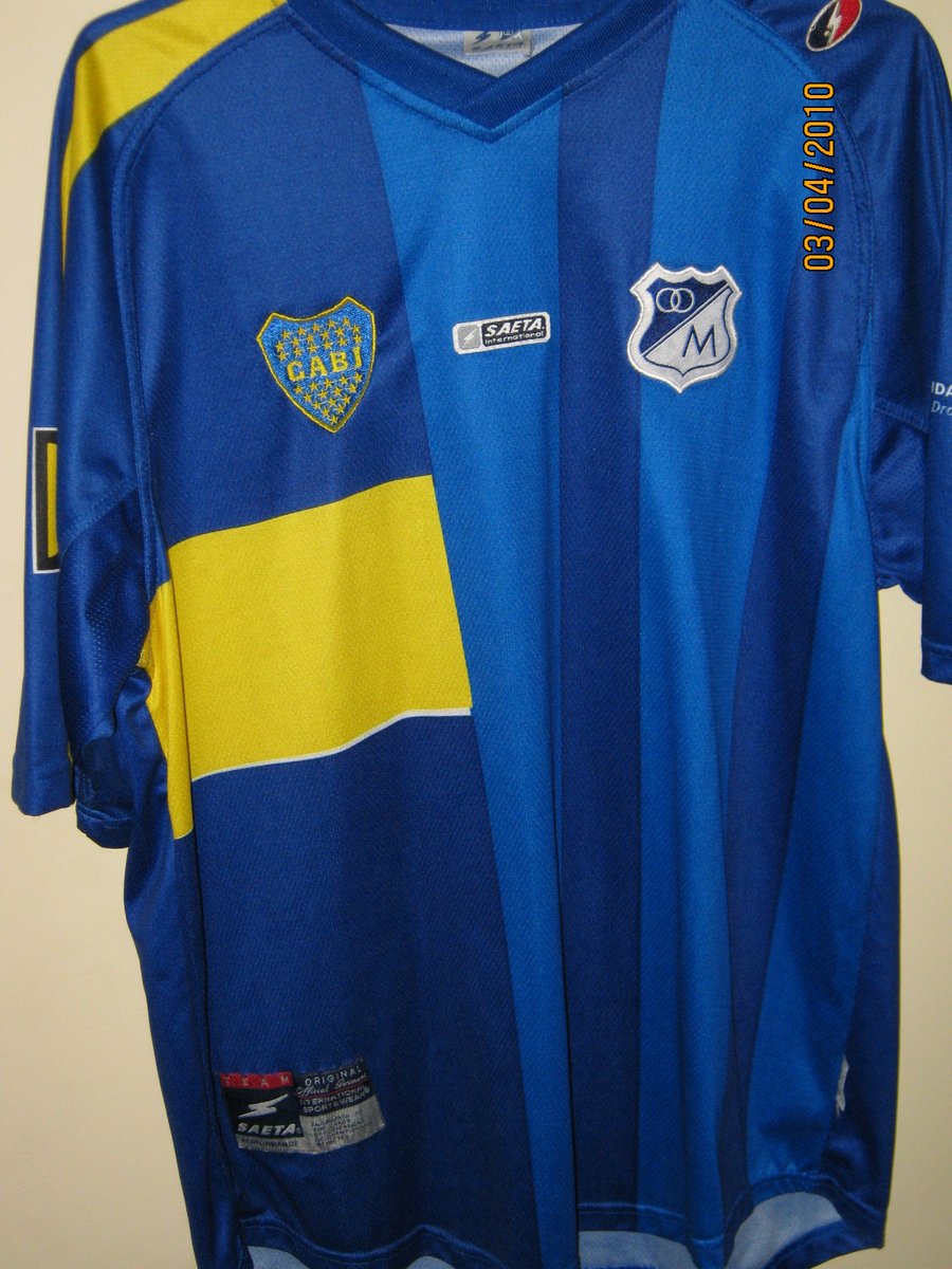 Para que jóvenes como ustedes no fumaran cocaína, Millos y Boca jugaron un amistoso en 2005 a instancias de la DNE, máxima accionista azul para entonces. Quedó de recuerdo esta prenda, herejía para muchos puristas embajadores. Image