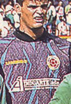 Las de los 80 y 90 fueron las décadas de los arqueros-líbero y también de los arqueros libres. Aquí el recordado Miguelito Calero jugando con el Cali pero con buzo de la selección y patrocinio unipersonal de Induarte. Image