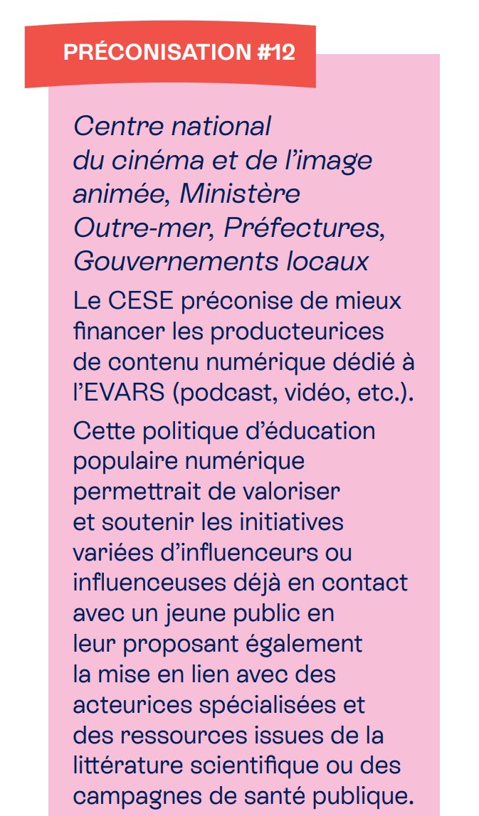 Le CESE envisage donc de financer non seulement des cours, mais encore des espaces de vie dans les écoles/collèges/lycées et même des influenceurs et autres "producteurices" de contenus. Et puis de demander à l'ARCOM de prendre en compte "la diversité des identités de genre".