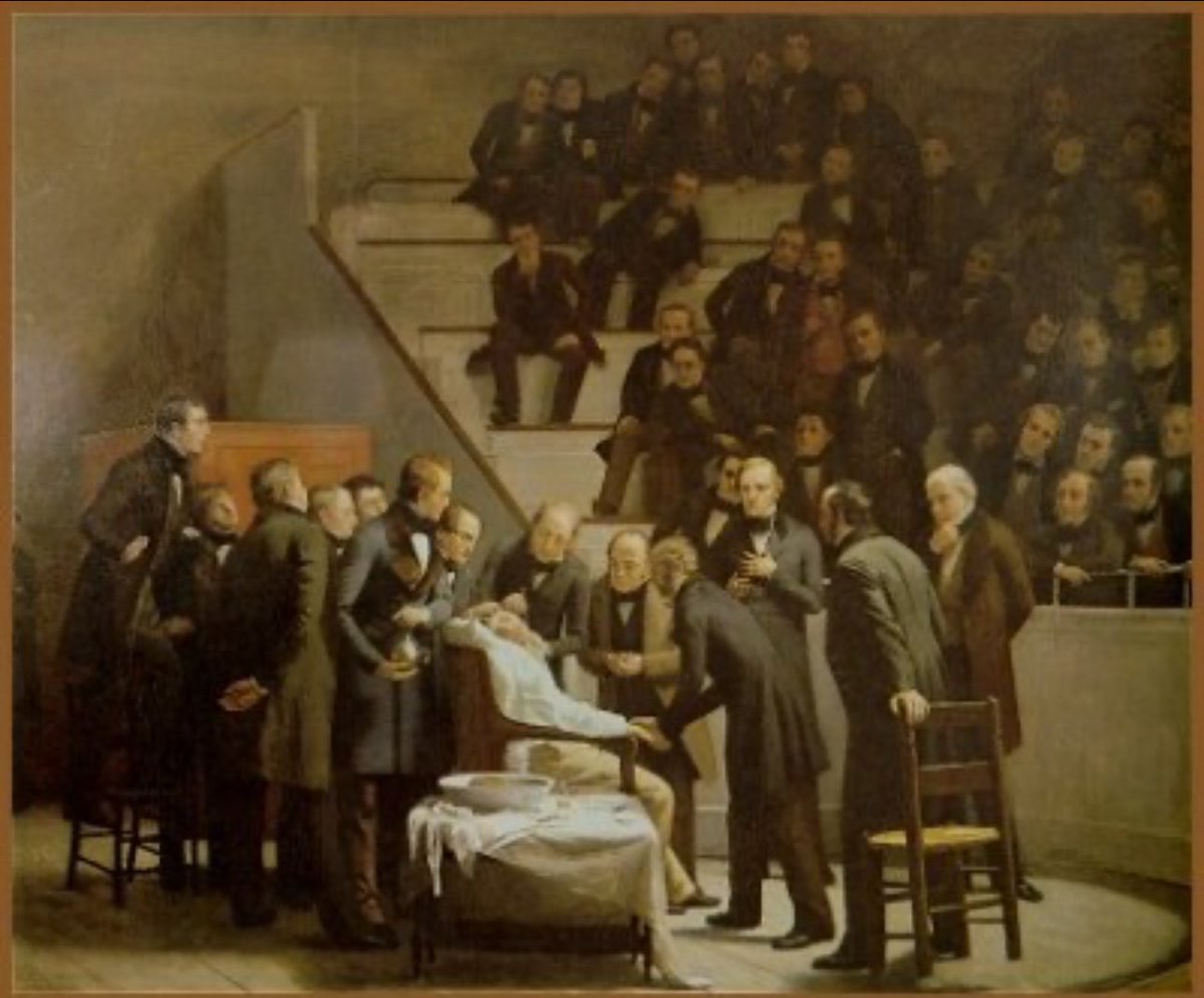 La date de la naissance de l’anesthésie moderne, semble être disputée dans la littérature. Le 16 octobre 1946 ressort néanmoins : au Massachusetts General Hospital, la démonstration par William Morton d’une anesthésie avec de l’éther.