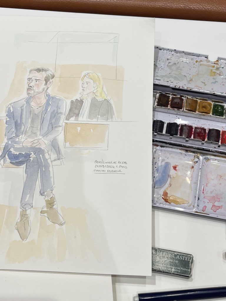 Concentrée sur le dessin d’audience et la prise de notes rapides pour cette matinée de débats où le président a souhaité interroger de nouveau Dominique Pelicot à « mi étape »✍️