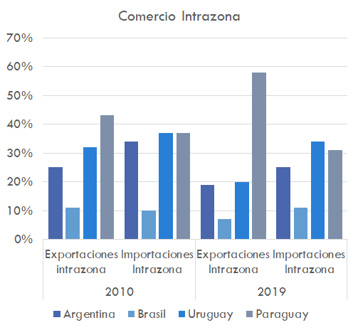 Las exportaciones intrazona de Uruguay son las que más se contrajeron entre 2010 y 2019