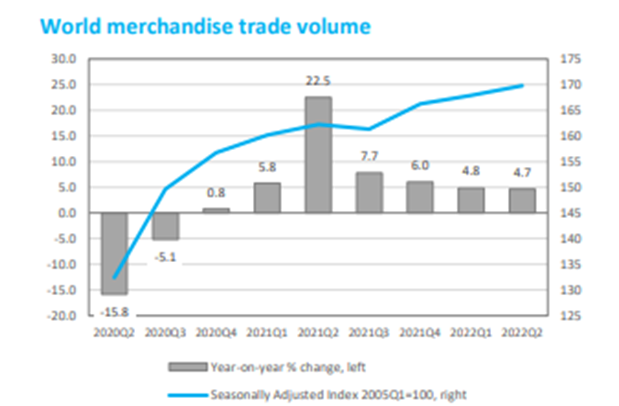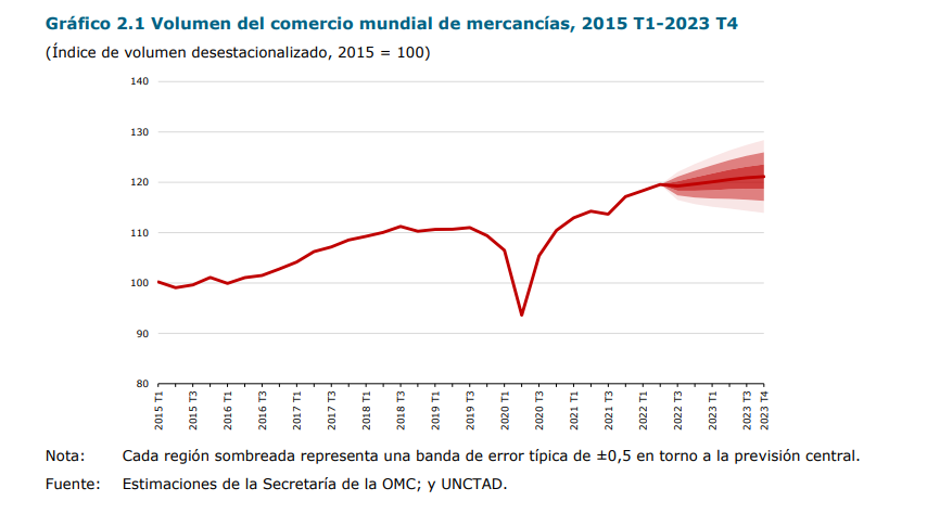 La guerra fue un elemento más en un escenario de por sí ya muy complicado en materia de comercio internacional. Desde ppios de 2022 las proyecciones de crecimiento se venían ajustando a la baja por la inflación, las tasa de interés elevadas, disrupciones en las cadenas de valor