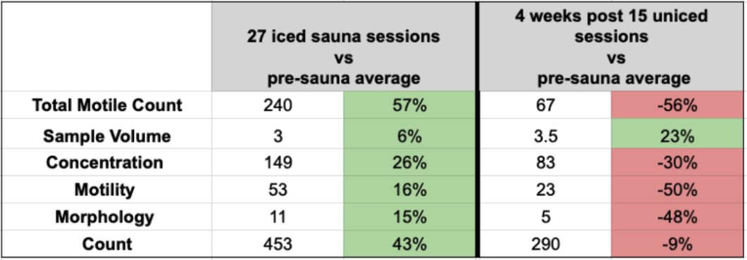 27 daily sauna sessions with ice on balls: