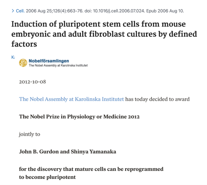 This remarkable discovery won Yamaka the Nobel Prize for Physiology or Medicine in 2012.