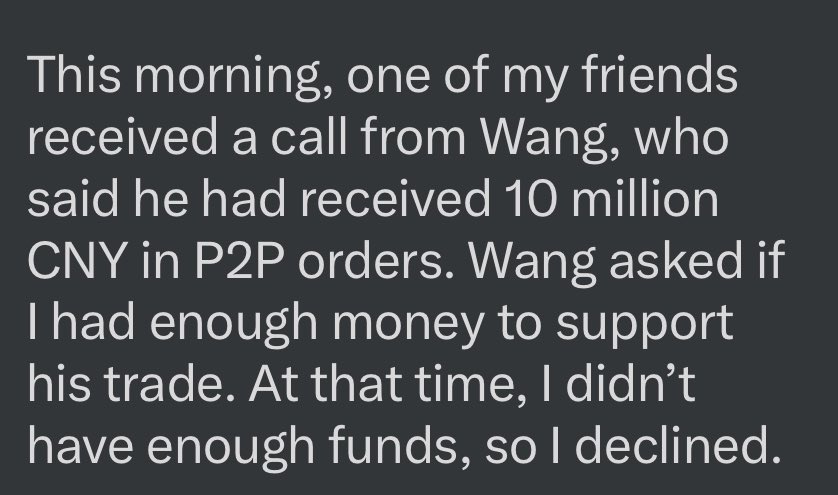 3/ They then shared one of Yicong Wang’s Tron wallet addresses with me from a screenshot of their WeChat conversation.